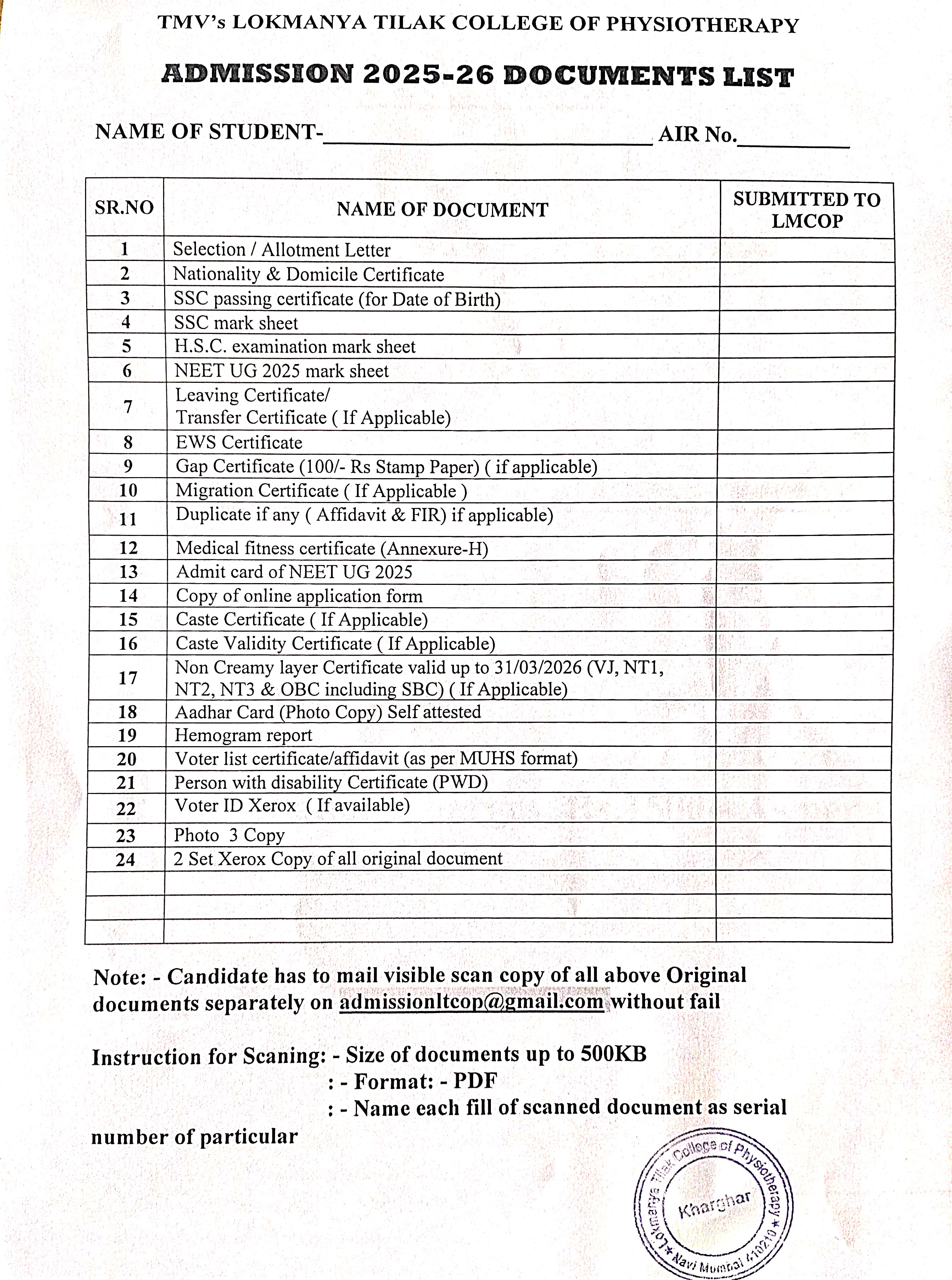 Admission 2024_2025 Document List